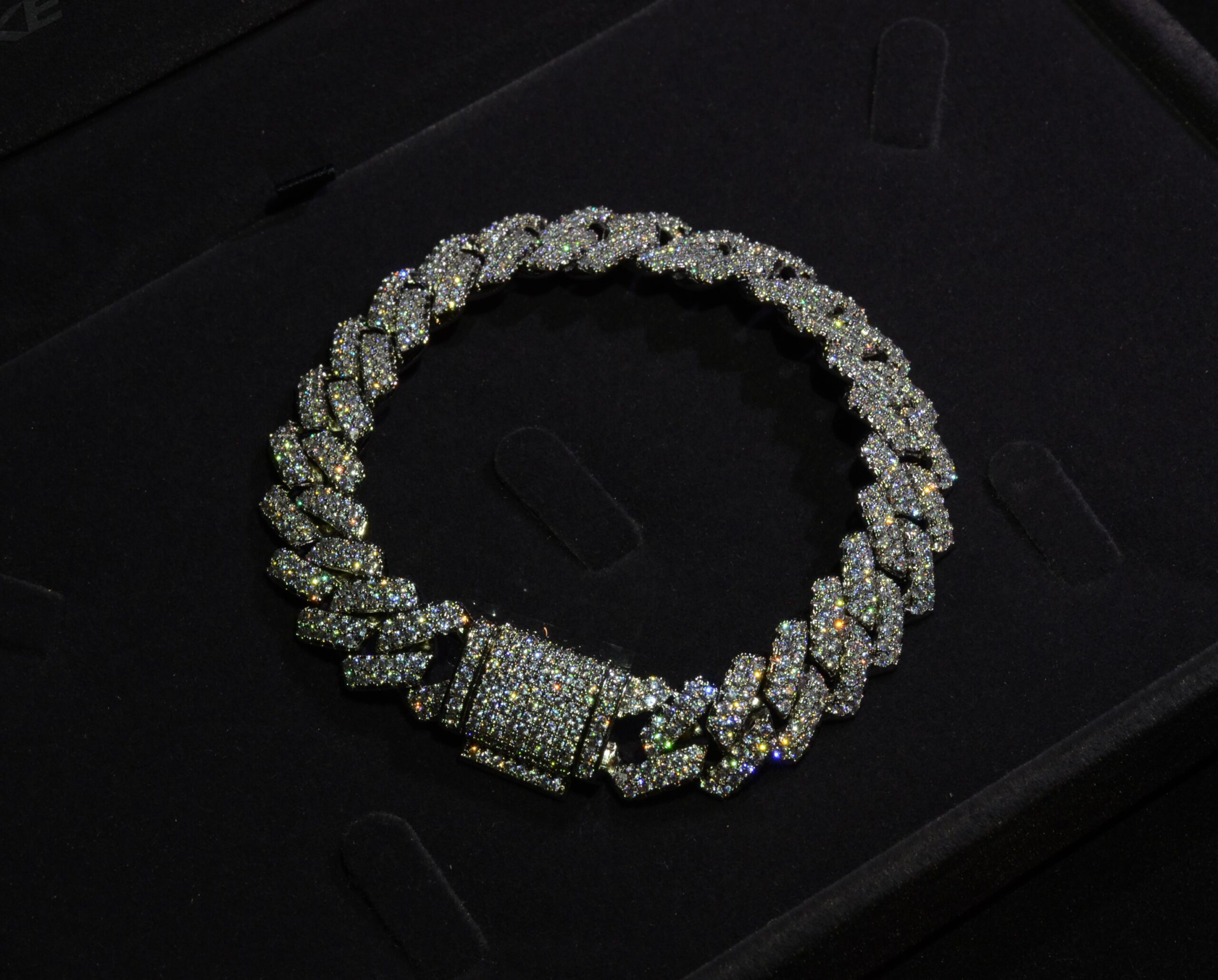 Cu o formă specifică cubaneză,impresionantă și sofisticată, brățara noastră este realizată prin o multitudine de legături ovale ale structurii, ce se îmbină perfect pentru a crea un design de lux. Aceasta este în totalitate încrustată în cristale ce prezintă o strălucire cu efecte de tip auroră prezentă în orice sursă de lumină. Brățara cuban are un sistem de prindere sigur, pentru a asigura confortul și siguranța pe toată durata purtării.