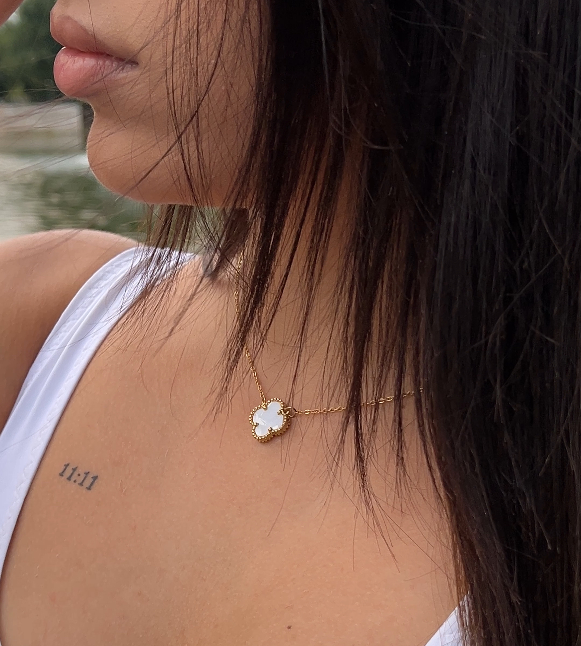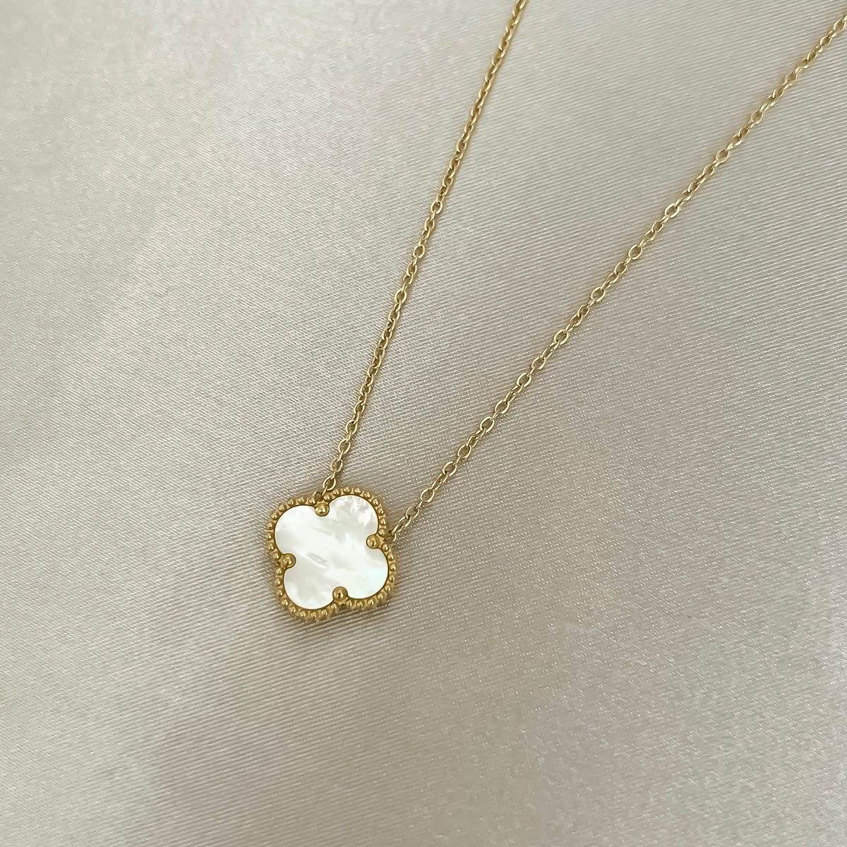 Un exemplu strălucitor al eleganței moderne. Pandantivul are forma distinctivă a unui trifoi cu patru foi, un design iconic care simbolizează norocul. Cu un finisaj auriu impecabil și un design atemporal, acest colier a devenit un accesoriu de bază si foarte popular în colecțiile de bijuterii ale multor iubitori de modă.